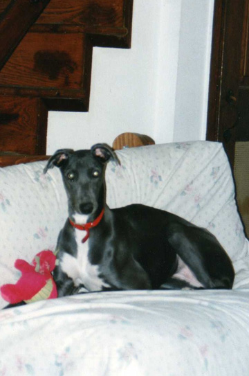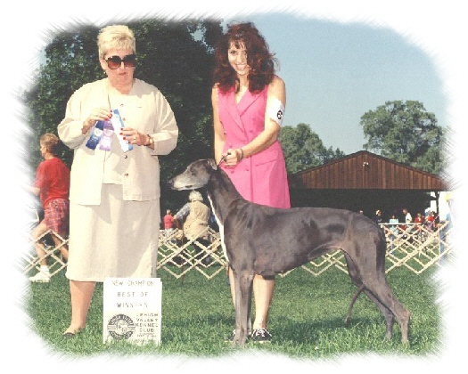 This is Sydney our foundation bitch. She was bred by Kathleen Whitaker and Mary Trubek. She is out of Ch. Artesia Knight of the Sun and Rocket's Aida(was within a single of finishing). We called her a our "little blue princess." This little girl had spunk from the first time we saw her. She was the smallest in her litter but you could tell she thought she was bigger than all the others. This "attitude" was ther reason why Dwayne fell in love with her. There was no doubt she was going to be part of our family.